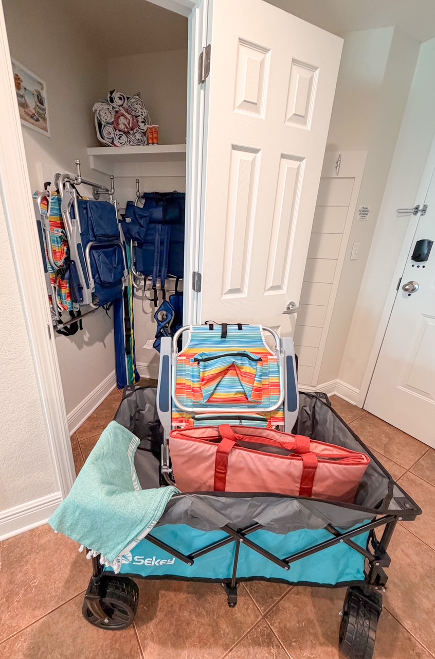- Beach essentials Beach towels, umbrella, beach blanket, snorkeling gear