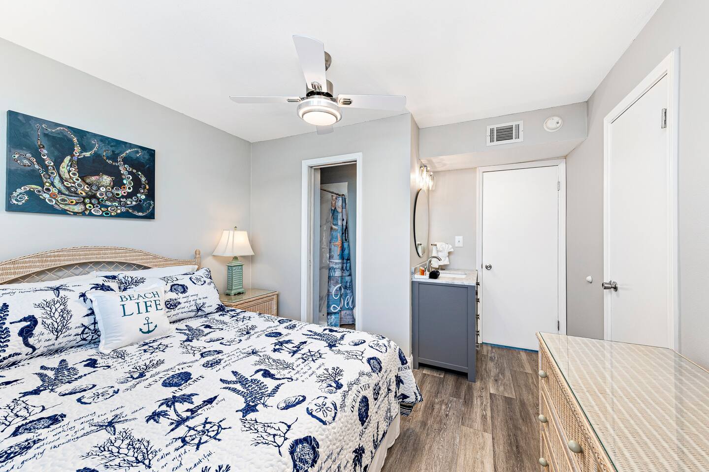 Master Bedroom-King bed Guest Room-Queen Bed Sleeper sofa in living room Kitchen is fully stocked with all the appliances you will need.