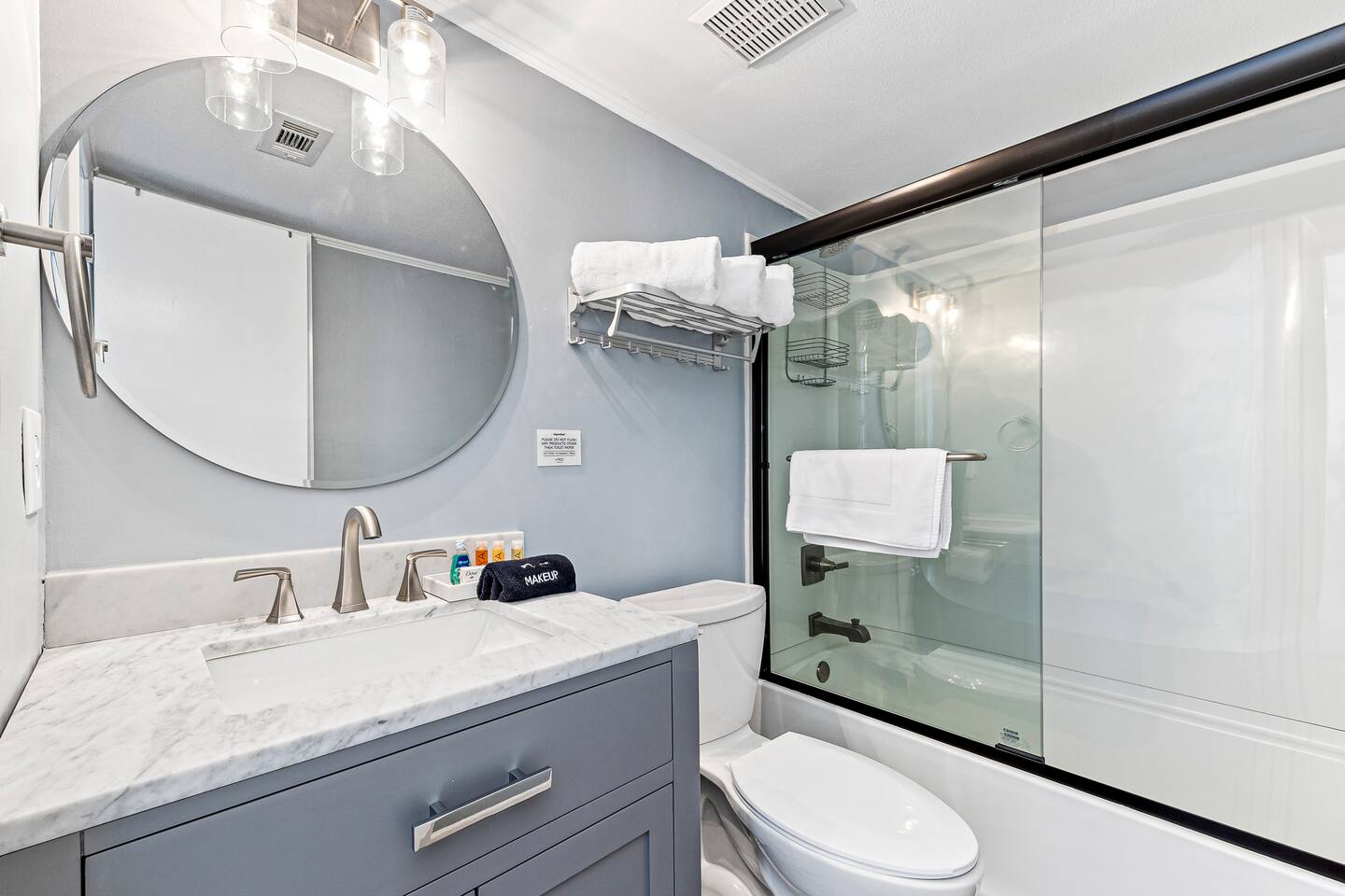 Free Guest Parking for 2 cars. Please note, the unit is set up with a starter pack of supplies when you arrive. 1 toilet paper roll for each restroom, 1 roll paper towels, 1 laundry pods, 1 dish pods and 2 trash bags. You are to provide anything extra you may need.
