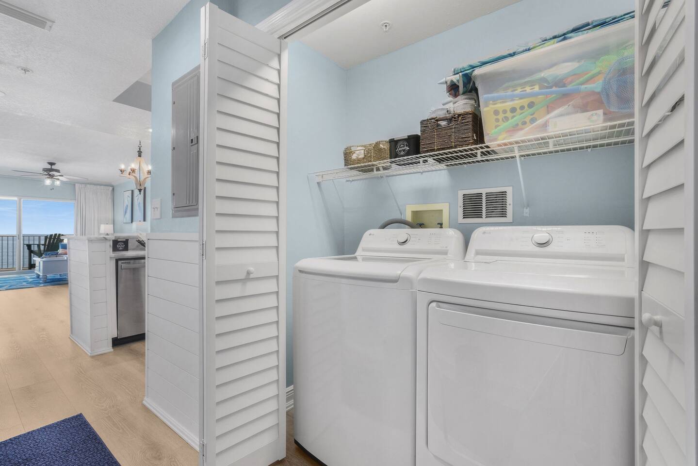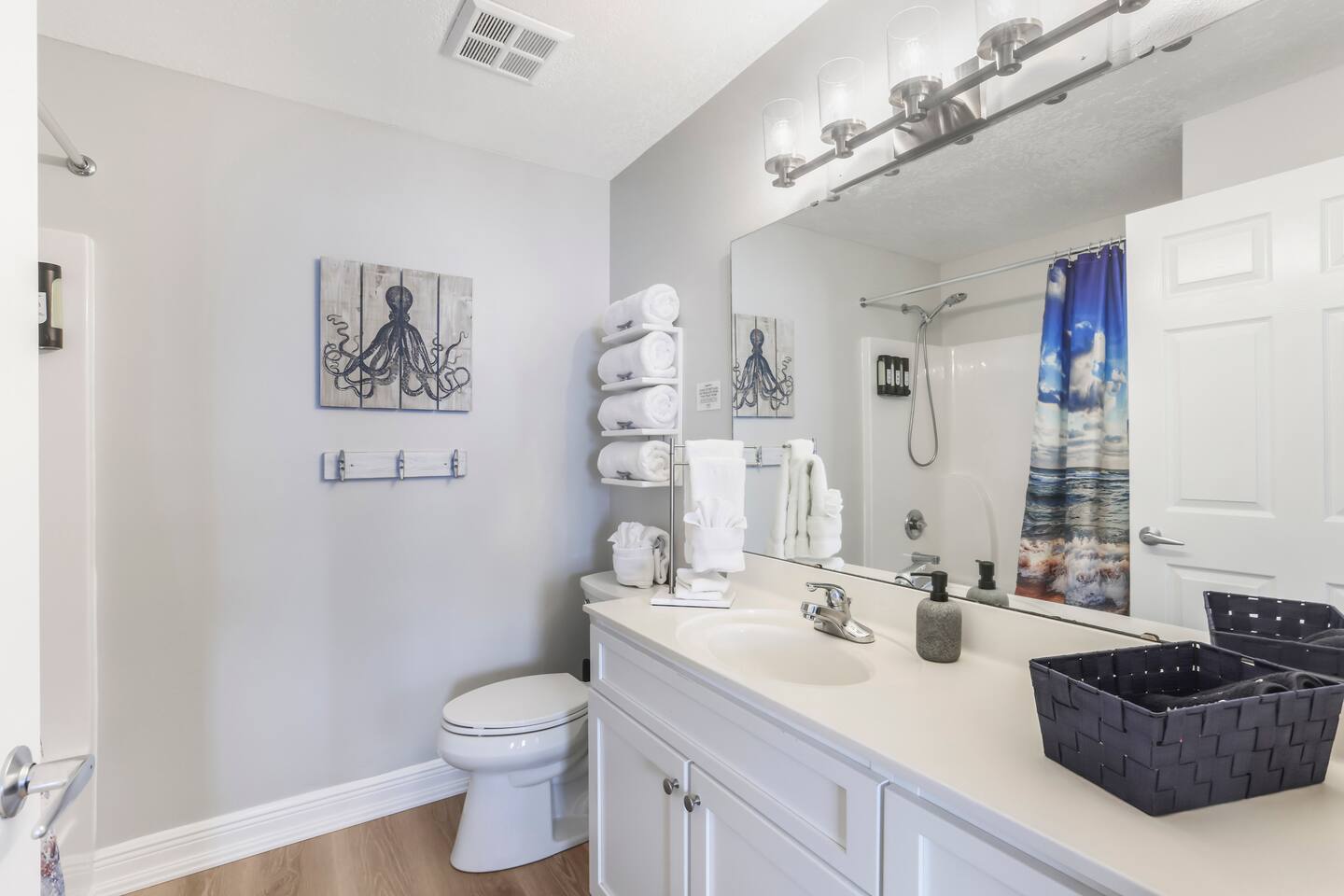 Please note, the unit is set up with a starter pack of supplies when you arrive. 2 toilet paper rolls for each bathroom, 1 roll paper towels, laundry & dish pods and trash bags. You are to provide anything extra you may need.