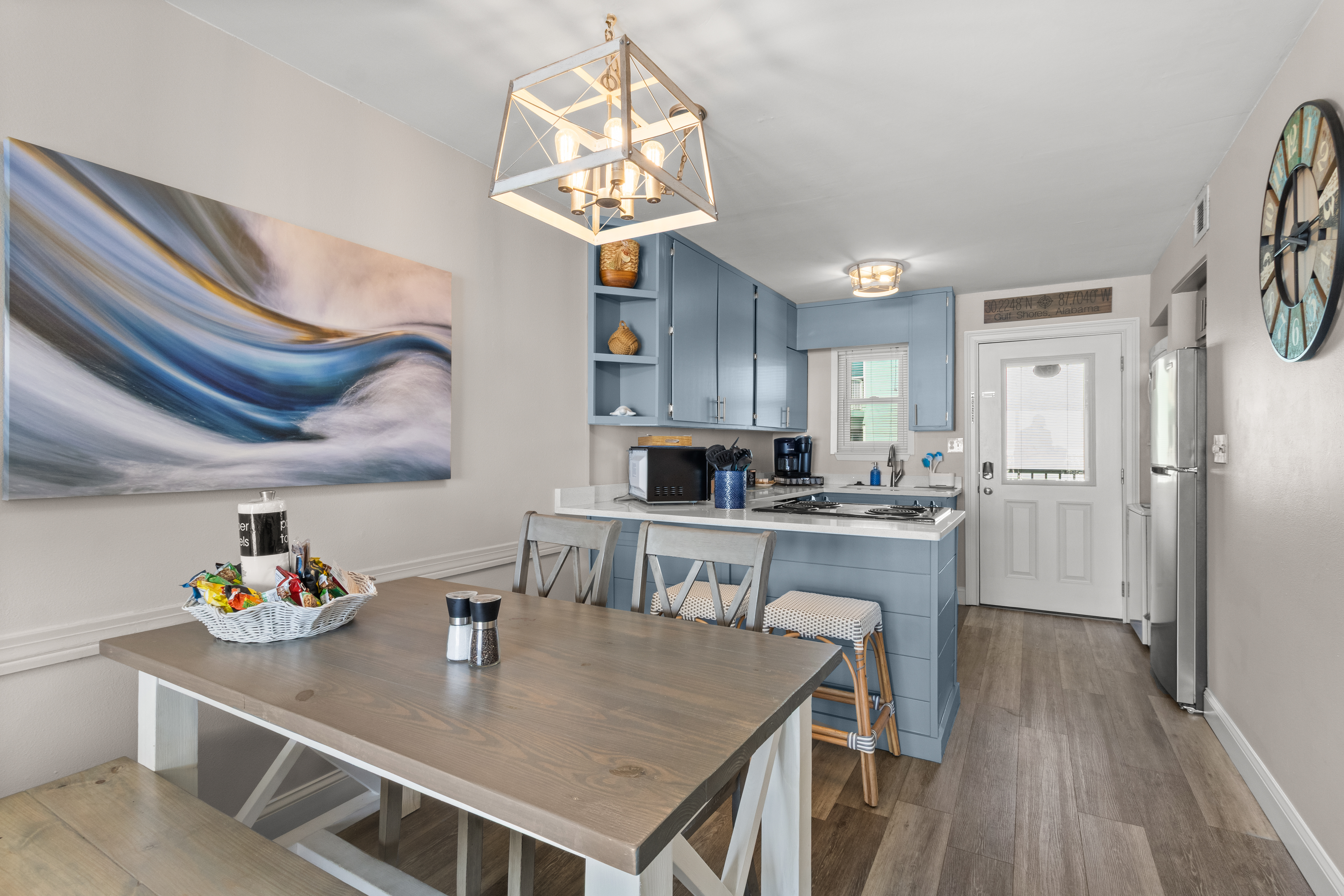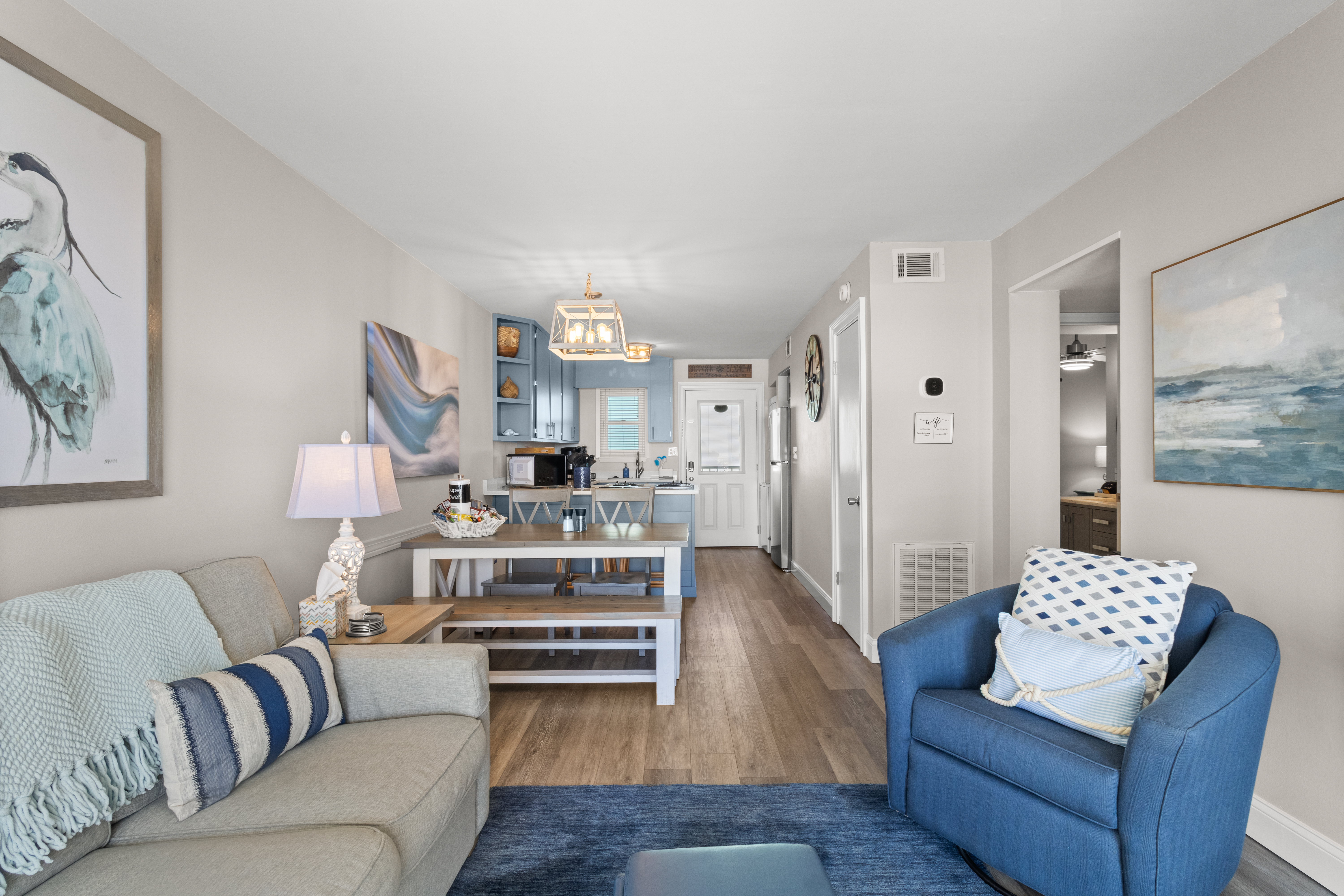 DIRECT BEACHFRONT Direct beachfront 2BR/2BA with king and queen beds plus sofa sleeper. Less than 1 min from the front door to the beach entrance! Fully stocked kitchen with spices, K-Cups, and more. Amenities include in-unit washer/dryer, WiFi, heated pool, BBQ area, and 2 covered parking spots. Key fob beach access and a short walk to The Hangout! Watch dolphins play while enjoying your morning coffee from the balcony. Free 2 Vehicle Covered parking